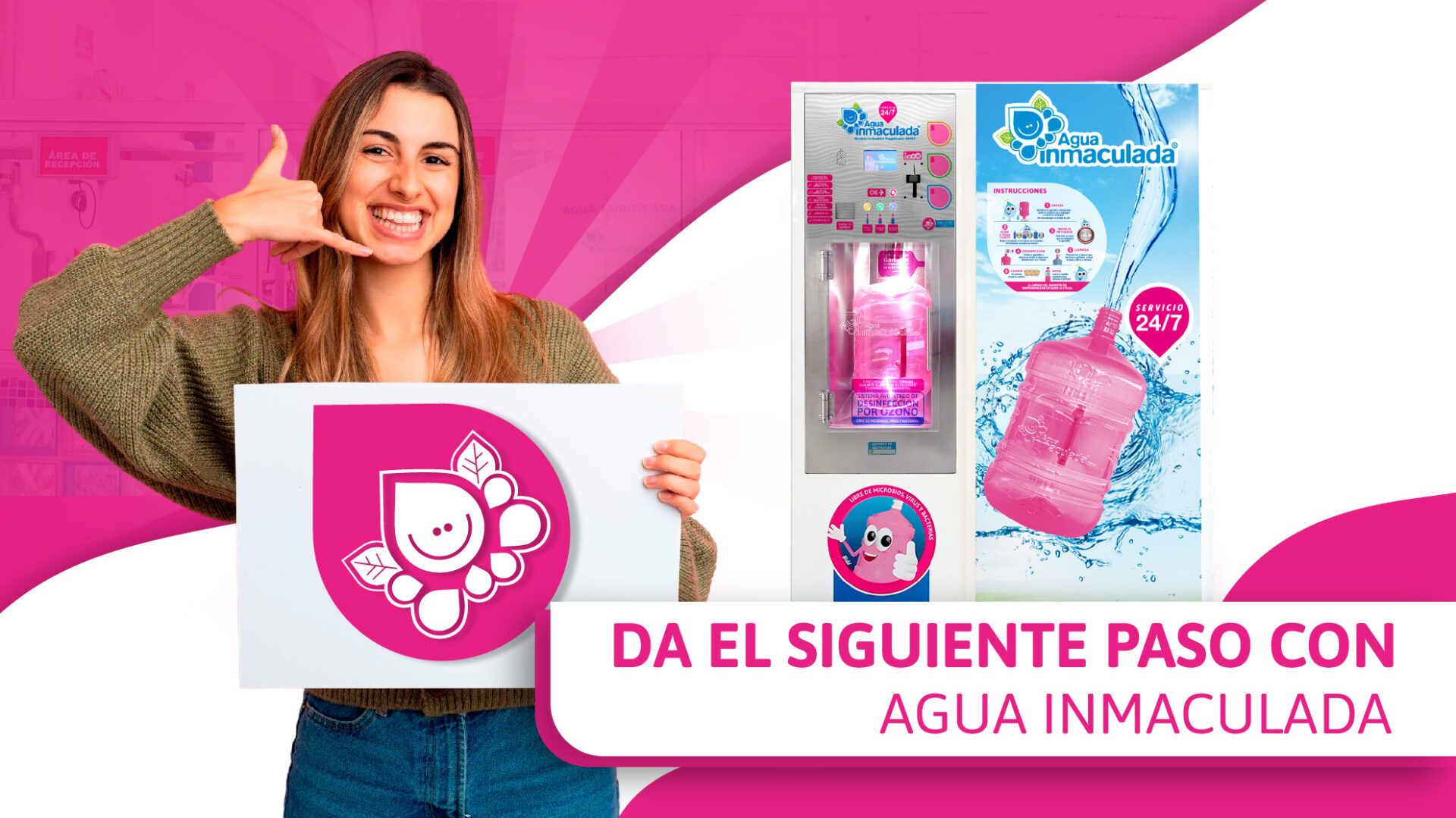 En Agua Inmaculada sabemos que el agua pura es una necesidad diaria, y por eso creamos soluciones que benefician a los consumidores y a quienes buscan una oportunidad real de emprender. Nuestras máquinas vending de agua purificada están diseñadas para ofrecer un producto de alta calidad, con tecnología avanzada, despachador automático y un modelo de negocio rentable que opera 24/7. Así que si quieres iniciar un proyecto de bajo costo, alta demanda y gran rentabilidad, estás en el lugar indicado.